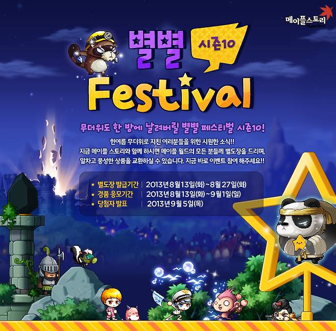 '메이플스토리'에서는 RED 업데이트에 대한 유저들의 성원에 감사하며 게임 내에서 수집한 '도장 아이템'으로 '타일런트 장비', '파프니르 무기' 등 최고 레벨 장비 아이템과 '트렌디 로얄 헤어쿠폰', '프로텍트 쉴드' 등 최고급 아이템으로 교환할 수 있는 '별별 페스티벌'을 이달 27일까지 실시한다. 또 추첨을 통해 3명에게 '세계여행 상품권'을 지급하며 '탭북', '태블릿PC' 등 다양한 경품을 제공한다.
