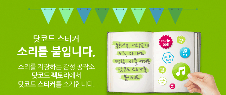 닷코드 스티커는 MP3등 디지털 사운드 파일의 정보를 저장할 수 있는 종이스티커로 종이에 저장된 소리는 펜으로 터치하면 재생된다. 기존의 찍어서 소리나는 펜과 같은 원리로 이번에는 사용자가 원하는 음원을 마음대로 편집하여 스티커에 저장할 수 있다.