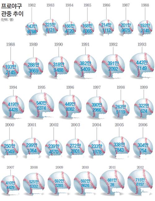 프로야구도 국제 대회 성적을 먹고 컸다. 1982년 서울에서 열린 세계야구선수권대회 우승은 갓 태어난 프로야구 인기로 이어졌다. 2008년 베이징 올림픽 금메달은 2004년 233만 명까지 떨어졌던 관중 수를 525만 명으로 2.25배로 늘렸다.