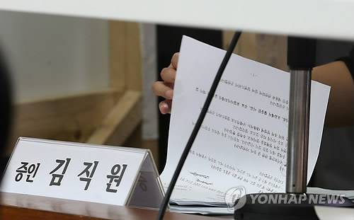 (서울=연합뉴스) 배정현 기자 = 국가정보원 댓글의혹 사건 규명을 위한 국정조사 특위 2차 청문회가 19일 오후 국회에서 열렸다. 댓글사건 당사자인 국정원 직원 김모씨가 예상 질문에 대한 답변이 적힌 자료를 보고 있다. 2013.8.19