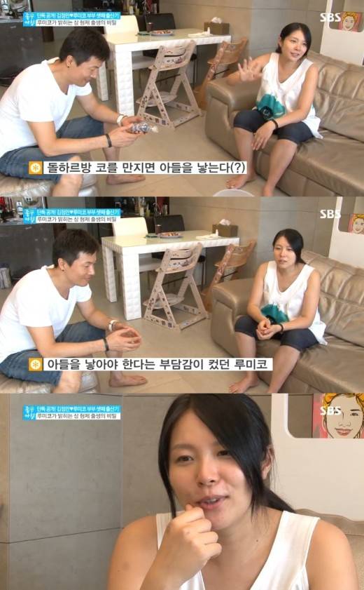 출산에 앞서 제작진을 집으로 초대한 루미코는 "한국 남자에게 시집을 가면 아들을 낳아햐 한다는 말을 들어서 걱정했다. 돌하르방을 만지면 아들을 낳는다고 들었다"고 입을 열었다.