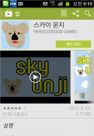 지난 22일 안드로이드 기반 휴대전화 앱을 판매하는 '구글 플레이'에는 '스카이 운지'라는 게임이 등록됐다.