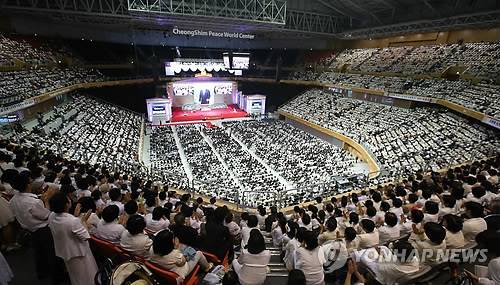 (가평=연합뉴스) 공병설 기자 = 세계평화통일가정연합(통일교·이하 가정연합) 창시자인 문선명 전 총재의 1주기 추모식이 23일 오전 경기도 가평군 청심평화월드센터에서 열렸다.