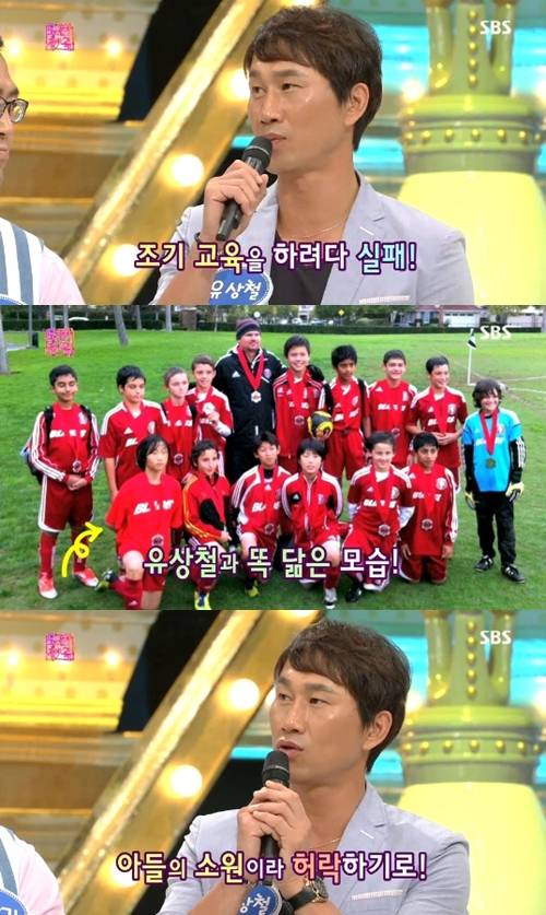 이에 유상철은 "아예 어렸을 때 축구를 시켜보고 싶어서 내가 욕심을 냈었는데 그땐 아들이 정말 관심이 없다고 했다. 하지만 지금 중학생 정도 되니까 축구를 너무 하고 싶어 하더라. 허락했다"고 말했다.