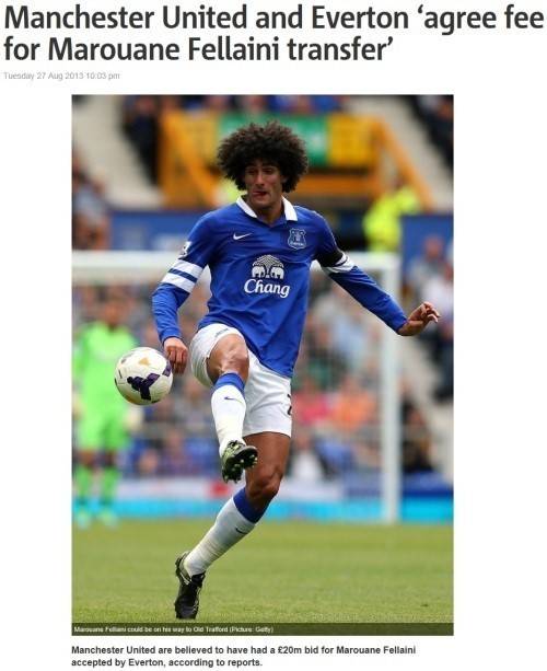 영국 언론 '메트로'는 28일(한국시간) 인터넷판을 통해 "맨유와 에버턴이 펠라이니의 이적에 합의했다. 정확한 이적료는 공개되지 않았지만 약 2000만 파운드(약 346억원)선이 될 것이며, 옵션 조항을 삽입한다면 2400만 파운드(약 415억원)까지 오를 수 있다"고 보도했다.
