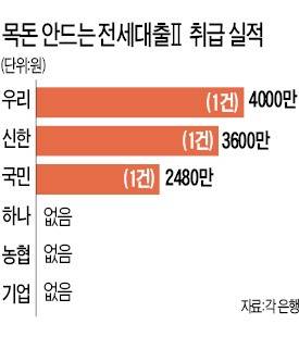 정부가 시중은행을 통해 내놓은 '목돈 안드는 전세대출 Ⅱ형'이 소비자에게 외면받고 있다. 지난 23일 출시 이후 30일로 1주일이 지났지만 국민 신한 우리 하나 기업 농협 등 해당 상품을 판매하는 시중은행을 통틀어 판매 건수는 3건에 불과하다.