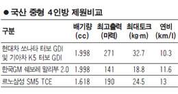 쏘나타·K5 '힘' SM5 TCE '연비' 말리부 '안전성' 돋보여