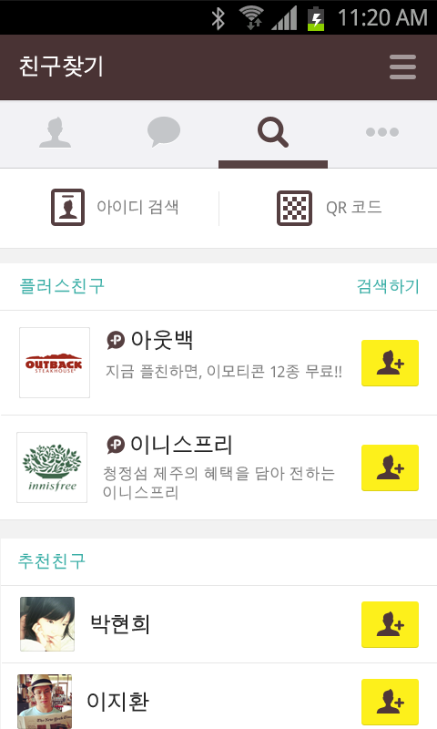 '채팅' 탭에서는 터치 한번으로 즉시 원하는 친구들을 선택해 새로운 채팅방을 만들 수 있는 아이콘도 새롭게 탑재했다. '친구찾기' 탭에서도 카카오톡 아이디 검색이나 QR코드 등 다양한 형태로 지원하고 있는 친구 찾기 기능들을 직접 노출시켜 더 다양한 방식의 친구 목록 관리가 활성화될 전망이다.