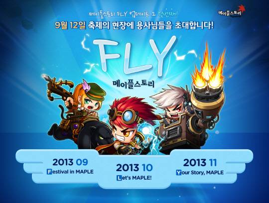 메이플스토리는 오는 12일 '페스티벌 인 메이플(Festival in MAPLE)', 10월 '렛츠 메이플(Let's MAPLE)', 11월 '유어 스토리 메이플(Your story, MAPLE)' 업데이트를 진행할 예정이다.