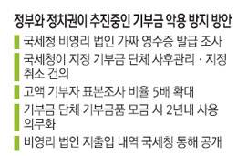 이와 함께 기부금단체의 모금실적과 활용내역을 각 단체의 홈페이지 이외 국세청 정보공개시스템에 한데 모아 공개하기로 했다.