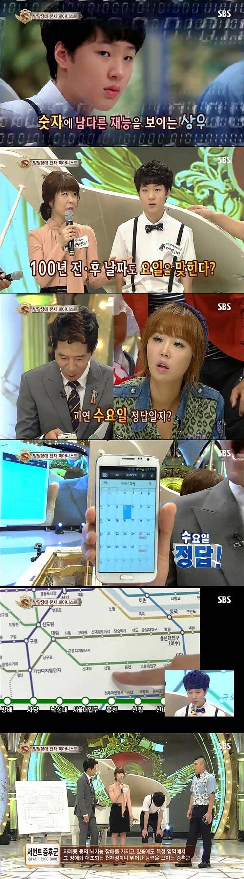 상우 군의 선생님인 음악치료사 김명신 씨는 상우가 "숫자에 뛰어나다"고 전하며 100년 전 후 날짜의 요일을 맞출 수 있음을 말했다.