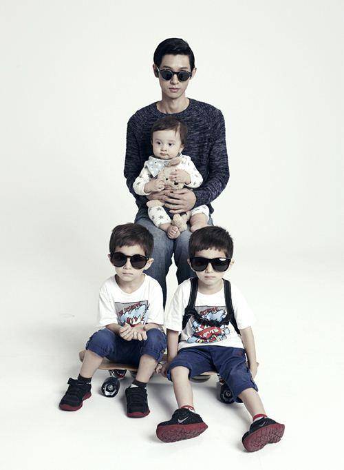 가수 정준영과 아이들 삼형제의 가족화보(?)가 공개돼 화제다.