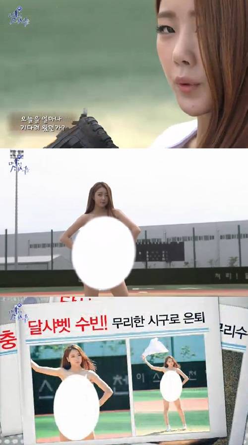 수빈이 준비한 시구는 알몸 시구였다. 유니폼을 벗어 던진 수빈의 몸에 걸쳐진 것은 단지 운동화 뿐이었고 수빈의 전신은 모자이크 처리 돼 더욱 야릇한 분위기를 풍겼다.