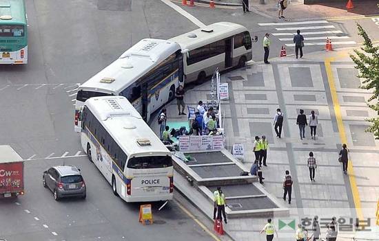 대한문 앞 6개월째 둘러싼 경찰 버스들, 의도적 집회 가리기 논란