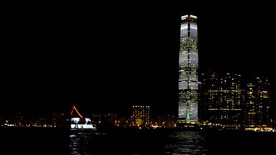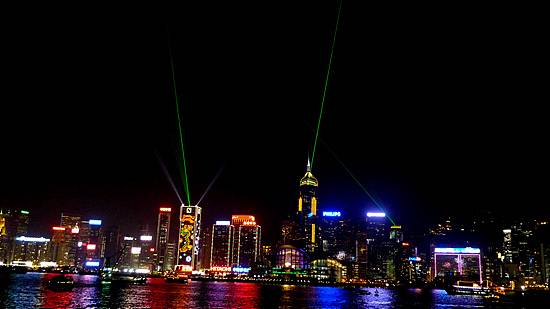 밤 8시가 되자 음악과 함께 빛의 향연이 시작되었습니다. 건너편 홍콩섬의 완차이의 건물에서 레이저 빔이 음악에 맞춰 춤을 추고 있습니다. 홍콩의 탄생과 성장, 에너지, 문화유산, 전통 그리고 협동과 일치를 의미하는 다섯 개의 주제를 가진 심포니 오브 라이트(Symphony of Lights) 공연이 시작된 것입니다.