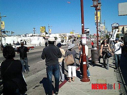 코리안 퍼레이드에서 김 의원 차량 따라붙어【뉴욕=뉴시스】노창현 특파원 = 미국 로스앤젤레스 한인축제에 참석한 김무성 새누리당 의원의 카퍼레이드에 '국정원 해체' 등을 외치는 시위대가 따라붙는 진풍경이 펼쳐졌다.