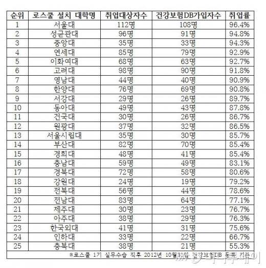 [머니투데이 이정혁기자][서울대 96.5%로 1위…충북대 55.3%로 가장 저조]