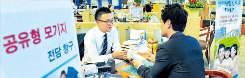 지난달 23일 우리은행 본점과 전국 지점의 대출상담 창구는 유난히 사람들로 북적였다. 연 1%대 저리로 빌려주는 수익·손익 공유형 모기지(장기 주택담보대출) 상품에 대한 사전 상담 첫날이었던 때문이다.