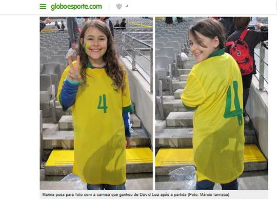 루이스의 선물을 받아 든 마리나는 자신에게는 마치 원피스와도 같은 사이즈의 티셔츠를 입고는 '인증샷'을 찍었다. 이 훈훈한 이야기는 브라질 언론 '글로부 에스포르치'에도 보도됐다.