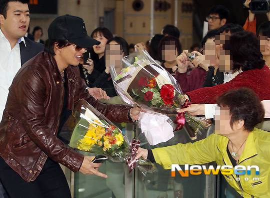 배용준이 일본에서 열린 '한류10주년대상'에서 대상을 차지하고 10월 21일 오후 김포국제공항을 통해 공항패션을 선보이며 입국했다.