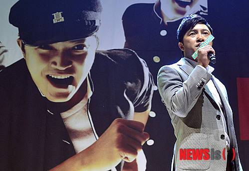 【서울=뉴시스】최동준 기자 = 22일 오후 서울 광화문 올레스퀘어 드림홀에서 열린 뮤지컬 '친구' 제작발표회에서 배우 안재모가 열연하고 있다. 2013.10.22.