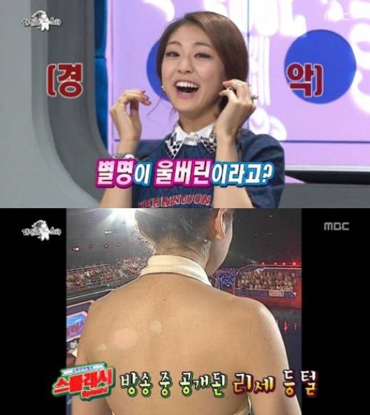 여성 그룹 '레이디스코드' 권리세(22)가 "등에 털이 많아서 별명이 권숭이(권리세와 원숭이를 합친 말)"라고 말했다.