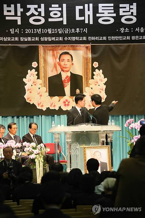 (서울=연합뉴스) 박지호 기자 = 25일 오후 서울 강남구 도곡동 서울나들목교회에서 '제1회 박정희 전 대통령 추모예배'가 진행되고 있다. 2013.10.25