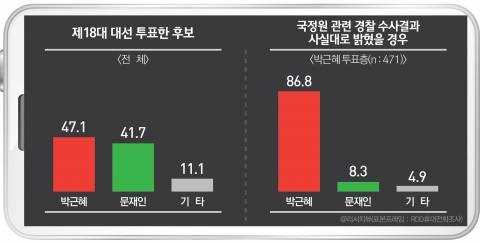 朴투표층 8.3% "경찰 사실대로 밝혔을 경우 文재인 찍었을 것"
