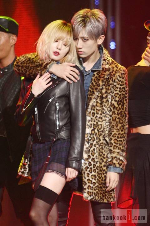 트러블 메이커(김현아 장현승)가 6일 오후 경기도 고양시 장항동 빛마루 방송센터에서 진행된 MBC MUSIC ′쇼! 챔피언′ 무대에서 화려한 공연을 선보이고 있다.