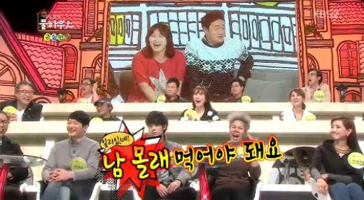 이날 김원효는 "아내 심진화를 보고 알게 됐다"며 "남 몰래 먹어야 살이 찐다"고 말해 스튜디오를 웃음바다로 만들었다.