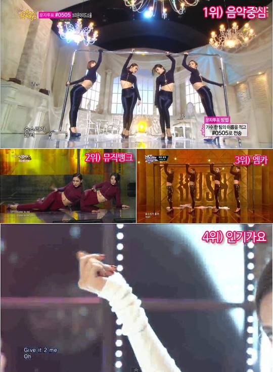 # 포인트 1) 커튼 안무 : 음악중심 > 인기가요 > 엠카운트다운 > 뮤직뱅크