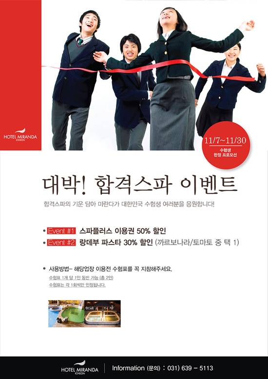 이천 미란다호텔, 수험생 '합격 스파 이벤트' 실시