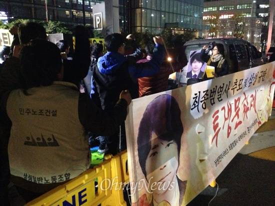 | ▲ 13일 저녁 삼성 본관 앞에서 열린 최종범 삼성전자서비스 노동자 추모식 |