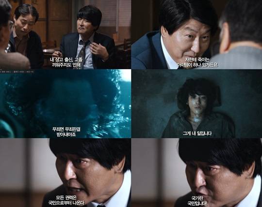 이어 전해진 장면에서 송우석은 법 앞에서 조차 평등하지 않은 사건의 행보에 자신의 인생을 건다. 예고편 말미 "포기 안 한다. 절대 포기 안 한다. 최소한 진우는 무죄라고 믿는다. 무죄다. 무죄면 무죄 판결 받아내야 한다. 그게 내 일이다"고 부르짖는 송우석의 모습은 보는 이들로 하여금 뭉클함을 자아낸다.