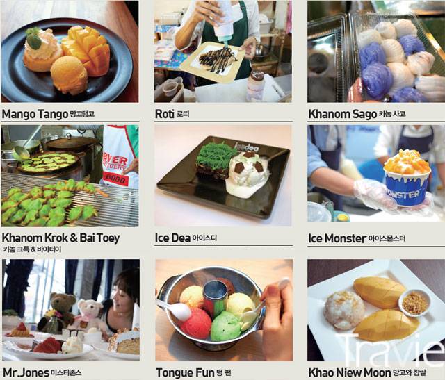 Mango Tango 망고탱고방콕에서 가장 유명한 디저트 가게라 할 수 있다. 저렴한 가격으로 망고와 아이스크림, 푸딩을 맛볼 수 있다. 기대가 너무 크면 실망할 수도 있다. www.mymangotango.com