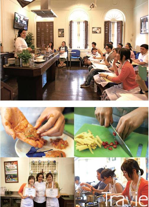 방콕 사톤 지역, 우아한 유럽풍 단독 건물에 자리한 쿠킹스쿨에는 이른 아침부터 페루, 일본, 타이완 등 각지에서 온 여행객들로 붐볐다. 8시45분 정각에 맞춰 오면 셰프들과 함께 직접 재래시장에 들러 신선한 식재료를 사는 것부터 강습은 시작된다. 요일마다 다른 요리를 배울 수 있는데 먹방 팀이 도전한 것은 새우 가지 샐러드, 태국식 생선 케이크, 치킨 레드커리, 팟타이였다. 누로씨와 그녀의 딸인 산드라Sandra가 강의실에서 요리 만드는 시범을 보이고, 부엌으로 건너가 레시피에 따라 직접 음식을 만들어 보는 방식이었다. 방금 눈앞에서 본 음식을 재료까지 다 준비되어 있는데도 똑같이 만드는 건 쉬운 일이 아니었다. 그럼에도 온 정신을 집중하며 가끔은 옆 사람이 어떻게 만들고 있는지 곁눈질도 하며, 마치 학예회를 준비하는 아이들처럼 음식 만드는 재미에 푹 빠졌다. 윤영은 처음으로 체험한 쿠킹스쿨이 이번 여행에서 가장 잊지 못할 순간이라며 만족해했다. "직접 태국 요리를 해볼 생각을 못했는데 생각보다 간단하더라구요. 물론 양과 조리시간을 잘못 조절해 전혀 예상치 못한 맛이 나오기도 했지만요."