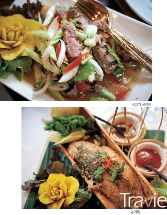 가격 게살 튀김 레드 커리 480바트, 쏨땀 320바트, 해산물 볶음 570바트추천메뉴 게살 튀김 레드 커리, 새우 샐러드Good 정갈하고 군더더기 없는 맛, 고풍스러운 인테리어Bad 일부 메뉴는 길거리 맛이 더 익숙하다위치 155 Rajadamri Road, 포시즌스 호텔영업시간 오전 11시30분~오후 2시30분, 오후 6시~밤 10시30분