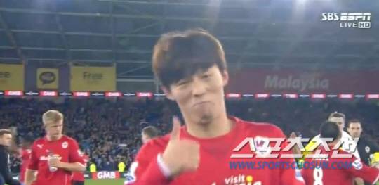 경기후 현지카메라는 김보경의 움직임을 계속해서 쫓았다. 박지성의 절친이자 대표적인 '지한파' 선수인 에브라가 '카디프시티 13번' 김보경의 어깨를 두드리며 축하를 건넸다. 13번은 박지성의 맨유 시절 등번호이기도 하다. 김보경과 에브라는 지난 여름 박지성이 주최한 상하이자선축구대회에서 함께 발을 맞춘 사이다. 에브라 역시 이날 전반 45분 루니의 크로스를 헤딩골로 연결하며, 맨유의 2번째 골이자 자신의 시즌 첫골을 터뜨렸다. 에브라의 추가골이 김보경의 동점골로 빛바랬다. 그러나 박지성을 매개로 이어진 두 에이스가 프리미어리그 그라운드에서 재회, 진검승부 후 인사를 나누는 장면은 훈훈했다. 이어 김보경은 카메라를 향해 엄지를 번쩍 들어보였다. 패기만만, 자신만만했다.