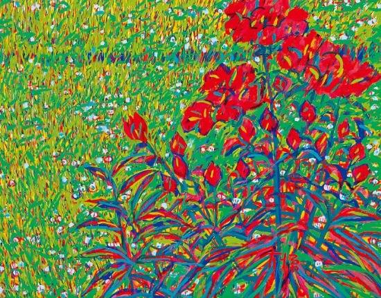 원래 추상화를 그렸던 김종학은 1979년 설악산에 정착한 후 현란한 색감과 색채 배합을 통해 민족 고유의 정서를 재창조했다. '설악산 풍경'에서 볼 수 있듯이 초록색 풀을 바탕으로 빨간 꽃을 대비시켜 싱그러운 여름의 정서를 표현했다. 특히 즉흥적인 붓 터치와 일정한 방향성을 갖지 않는 붓질은 무심한 아름다움을 추구했던 한국적 정서와 통한다.