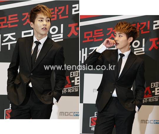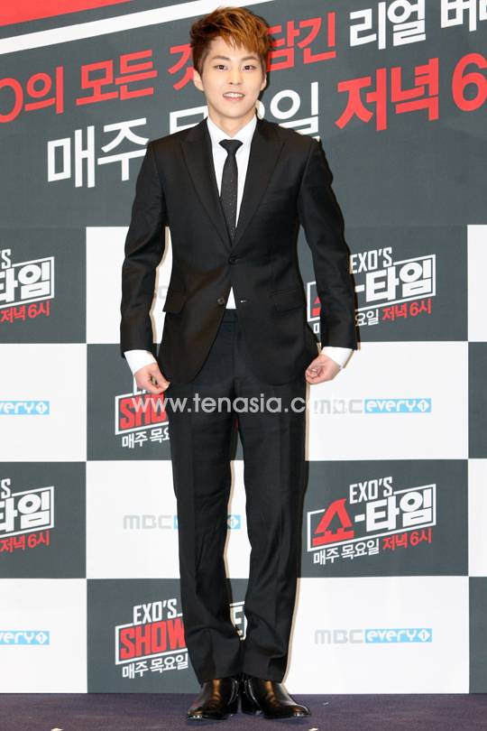 그룹 엑소(EXO) 멤버 시우민이 29일 오후 서울 여의도 CGV에서 열린 MBC에브리원 'EXO의 쇼타임' 제작발표회에 참석해 포토타임을 갖고 있다.