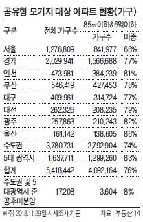 부동산114에 따르면 서울을 포함한 수도권과 5대광역시에서 이번 공유형모기지로 매입 가능한 아파트는 수도권 279만2904가구, 5대광역시 129만9260가구 등 총 409만2164가구에 달한다. 수도권 지역 물량의 74%, 5대 광역시 물량의 83%다. 준공후 미분양 아파트는 3604가구로 집계됐다.