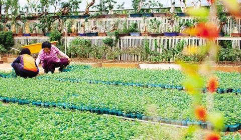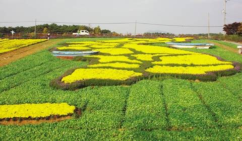 통로엔 잔디 대신 보리를 심어 더욱 푸르게 한다. 엄씨는 "어린이들이 국화를 보면서 마음대로 뛰놀 수 있도록 일부러 보리를 심었다"고 했다. 농원 안에 국화가 없는 곳에는 마찬가지로 알타리를 심어 더욱 푸르게 보이게 한다. 녹색의 알타리들은 국화를 구분 짓는 역할을 한다. 구분된 국화는 하트로, 한반도 지도로 다시 태어난다. 쓸데없는 공간이 없을 정도로 알차게 이용하고 있다.