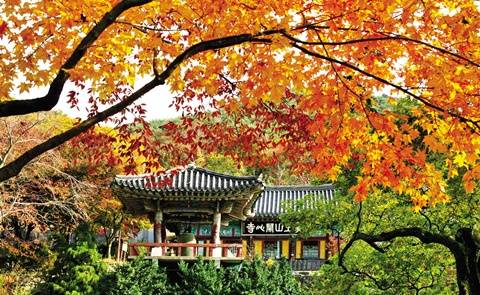 ↑ [월간산]개심사에도 울긋불긋 단풍이 화려하게 물들어 있다. 사진 서산시청 제공 |