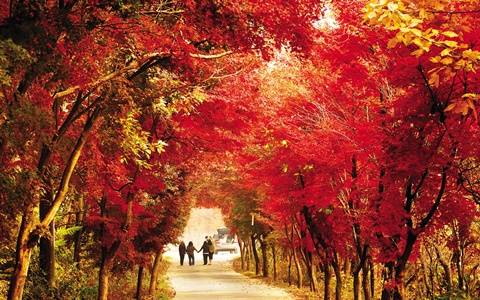 ↑ [월간산]아라메길에도 붉은 단풍이 짙게 물들어 가을의 정취를 느끼게 한다. 사진 서산시청 제공 |
