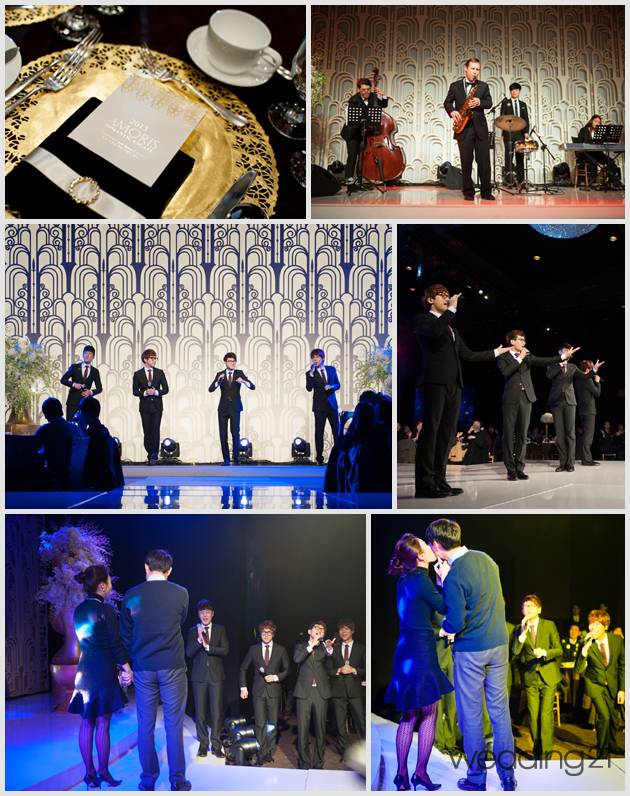 아모리스만을 위해 만든 미슐랭 스타의 메뉴와 함께 준비된 식사를 하며 아르 데코 분위기에 어울리는 라이브 재즈 연주가 인상적이었다. 식사 후 진행된 싱글 남녀 커플 매칭 이벤트는 사전에 싱글에게만 숫자스티커를 붙여 싱글임을 알린 뒤 마음에 드는 이성이나 Gold & Black의 드레스코드를 잘 이행한 이성에게 MISS, MR. AMORIS 스티커를 부착하게 하여 많은 스티커를 받은 사람에게 선물을 증정했다. 스페셜 게스트로 초대된 스윗소로우의 공연과 프로포즈 이벤트도 있었다.