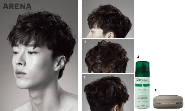 Cut Point 1.바짝 친 옆머리와 긴 윗머리의 경계를 확실히 나눠준다. 단, 구레나룻이 없거나 두상이 너무 작은 경우는 옆머리의 길이를 적당히 살려주는 게 좋다. 2. 헝클어진 느낌을 그대로 살려라. 굳이 모양을 만들려고 하면 오히려 어색해진다. 3. 만약 뒤통수가 납작하다면, 뒷머리도 짧게 커트해라. 오히려 머리가 볼륨감 있어 보인다. 스타일링할 때도 잊지 말고 반드시 뒷머리를 구기듯 잡아주며 볼륨감을 살린다.