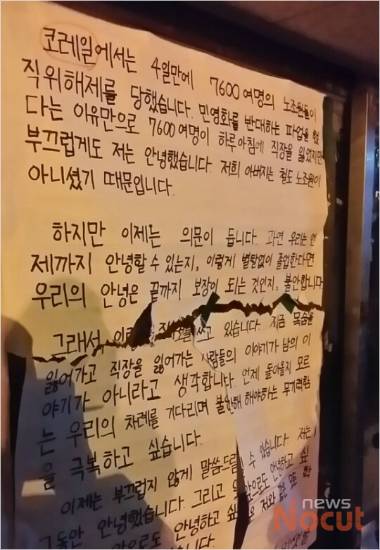 자신이 쓴 대자보가 두 차례나 찢긴 이샛별 씨는 15일 자신의 페이스북에 "지금 어떻게 대응할지 방안을 고민 중이며 이것저것 알아보고 있다"고 밝혔다.ten@cbs.co.kr