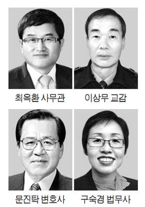 최옥환 서울고등법원 사무관(56), 이상무 춘천교도소 교감(56), 문진탁 변호사(79), 구숙경 법무사(50)가 올해 '법조봉사대상' 수상자로 선정됐다.