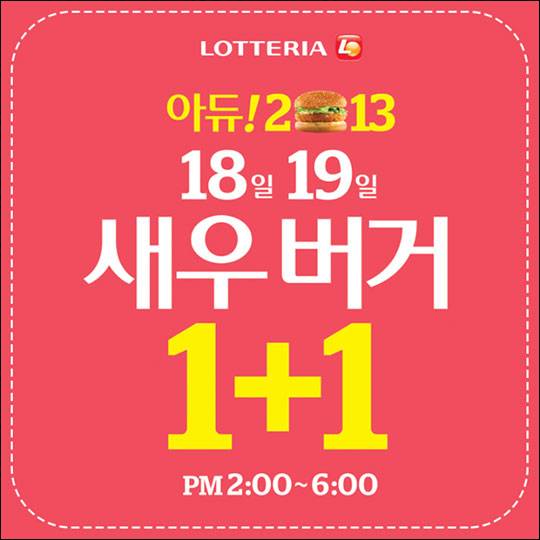 이에 따라 17일부터 이틀간 오후 2시에서 6시 사이에 롯데리아를 방문하는 고객들은 새우버거(3200원) 하나를 구매할 시 하나 더 증정 받을 수 있게 됐다.