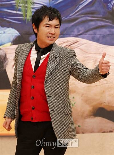 17일 오후 서울 목동 SBS사옥에서 열린 < 정글의 법칙 인 미크로네시아 > 제작발표회에서 배우 임원희가 엄지손가락을 들어보이며 포즈를 취하고 있다.